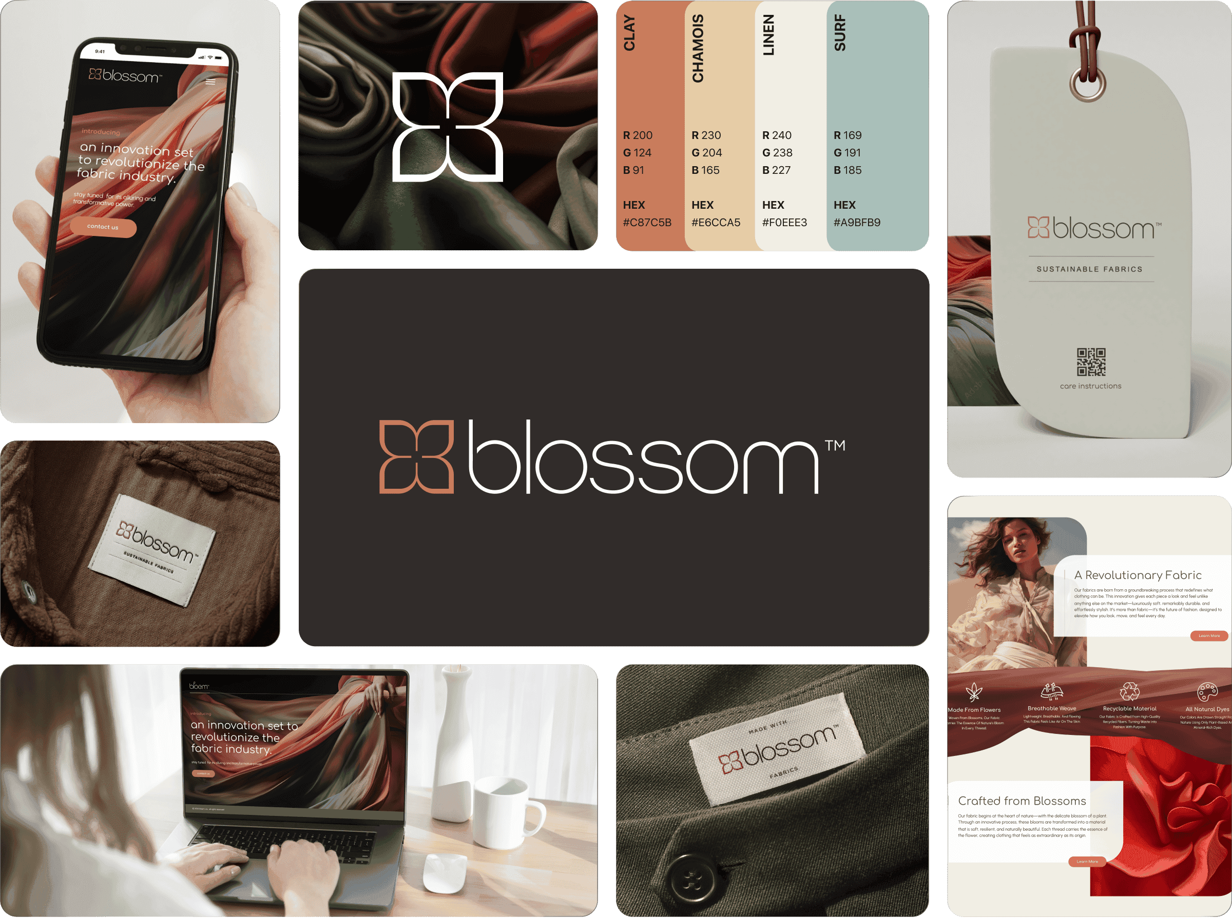 Blossom is a sustainable fabric brand redefining luxury with natural, eco-friendly textiles crafted from flowers and renewable sources. Their mission is to bring together sustainability, quality, and elegance in fabrics designed for fashion, interiors, and lifestyle brands. Blossom needed a strong visual identity and digital presence to tell their story and stand out in a competitive textile market.