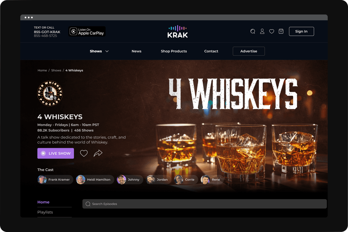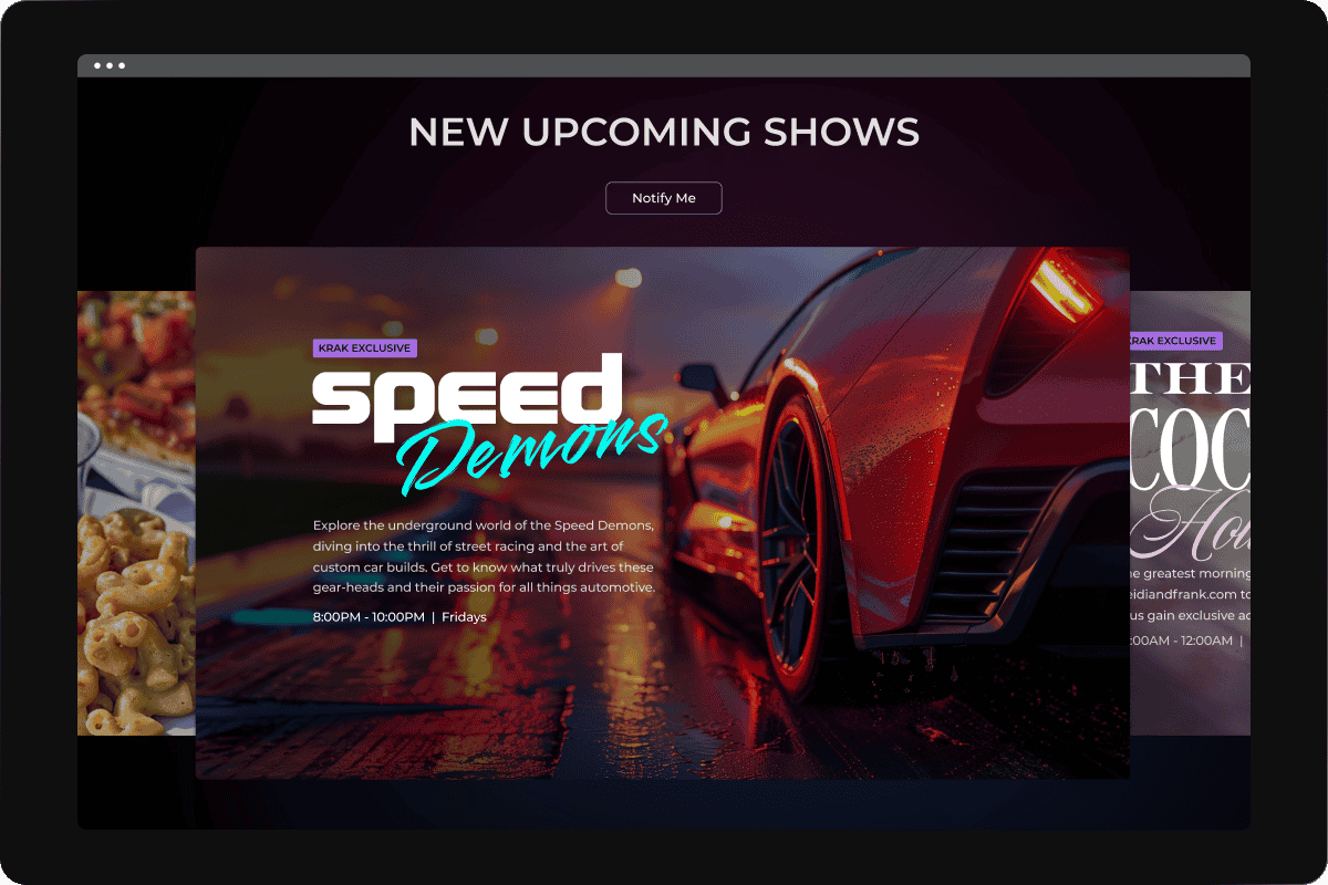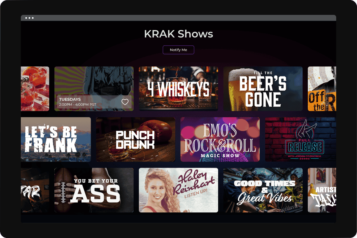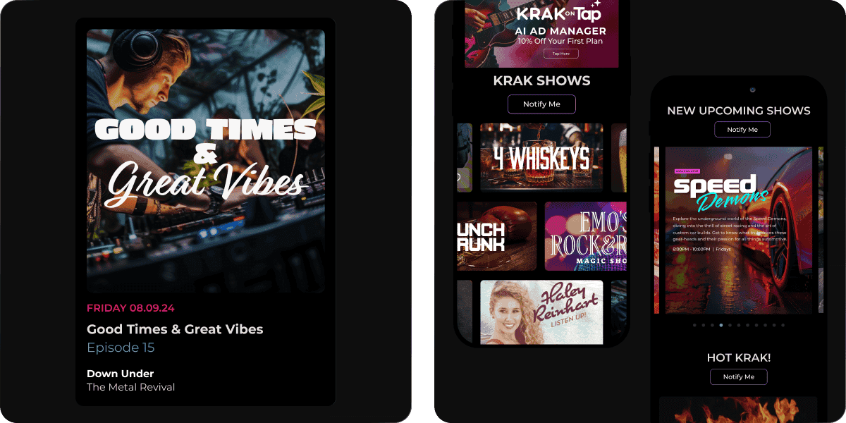 KRAK set out to disrupt the streaming landscape dominated by giants like SiriusXM and Spotify with a bold vision for a modern, creator-driven experience. Yet, their ambition was constrained by outdated digital channels, the absence of a scalable platform for shows and live events, and limited opportunities for audiences to explore or interact beyond passive listening. They needed more than a digital facelift, they needed a complete ecosystem that could scale rapidly, attract new audiences, and set a new standard for how streaming connects creators and fans.