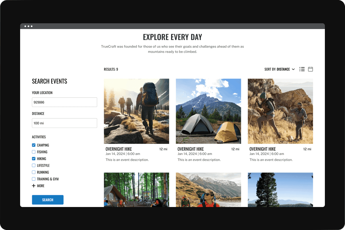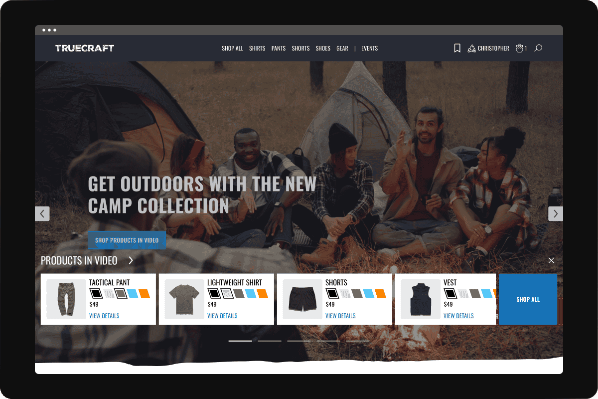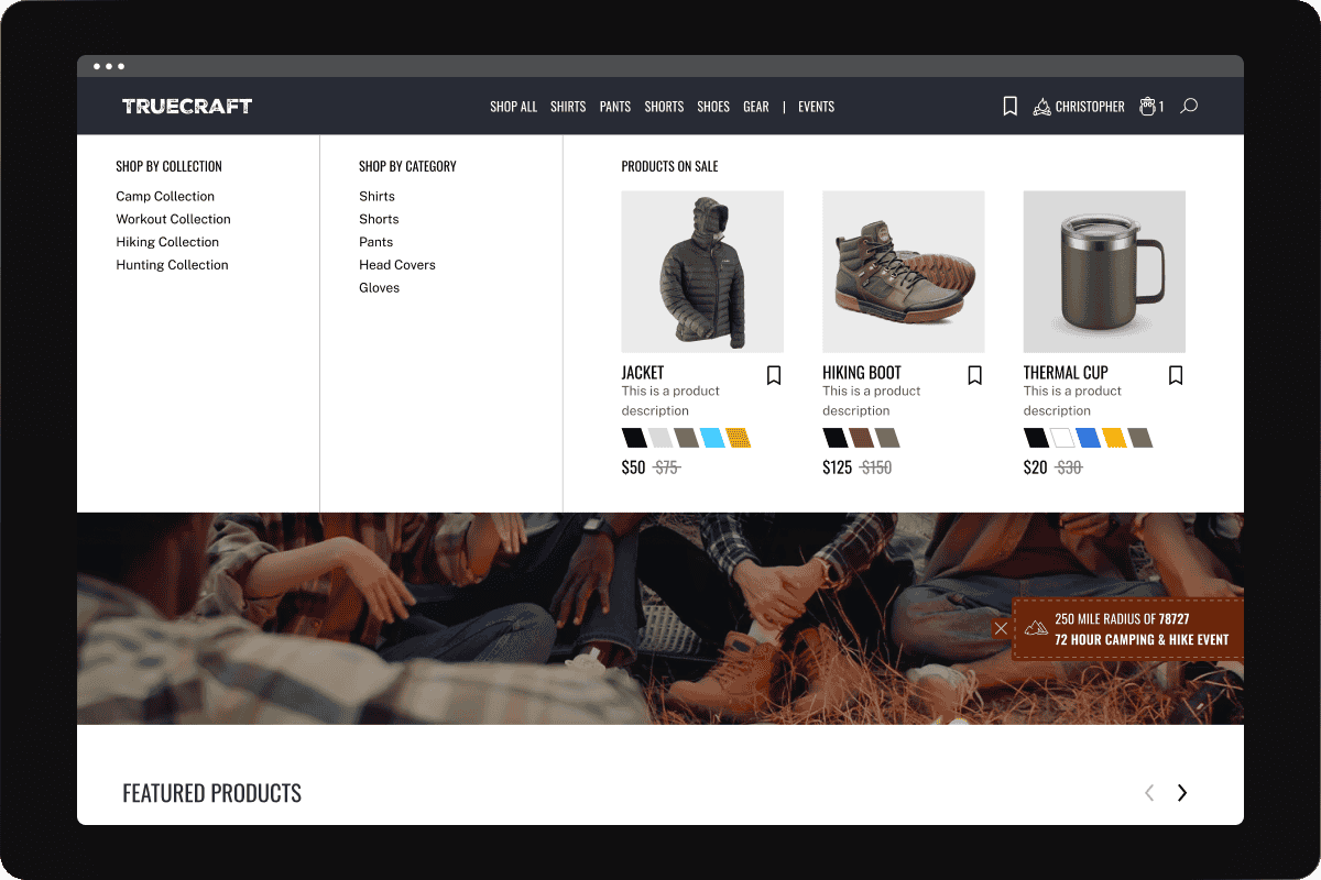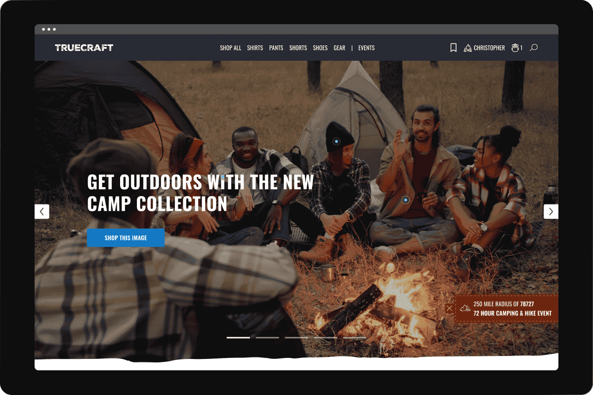 We built Shop by Scene to mirror how customers actually discover TrueCraft in the wild, through motion, atmosphere, and context, not just a grid of products. We used live media, including video and still imagery, to show products being used in real scenarios while ensuring the experience never “locks out” the ability to purchase directly from what the customer is watching. That same behavior carries over to TrueCraft’s social presence so users can buy directly from the platforms they already spend time on, turning content into commerce without breaking the story. By connecting scenes to shoppable products and tying those scenes to local and destination moments, we made inspiration immediately actionable. We created an Events layer designed for how people actually plan their weekends and trips, with discovery powered by geo-location and direct search. Customers can find what’s happening near them or in the destination they’re traveling to, then quickly move from curiosity to action by viewing details, buying tickets, or saving events for later. This transformed TrueCraft from a brand you visit when you need something into a platform you return to because something is always going on, and because events naturally connect to what you wear, what you pack, and what you do next.