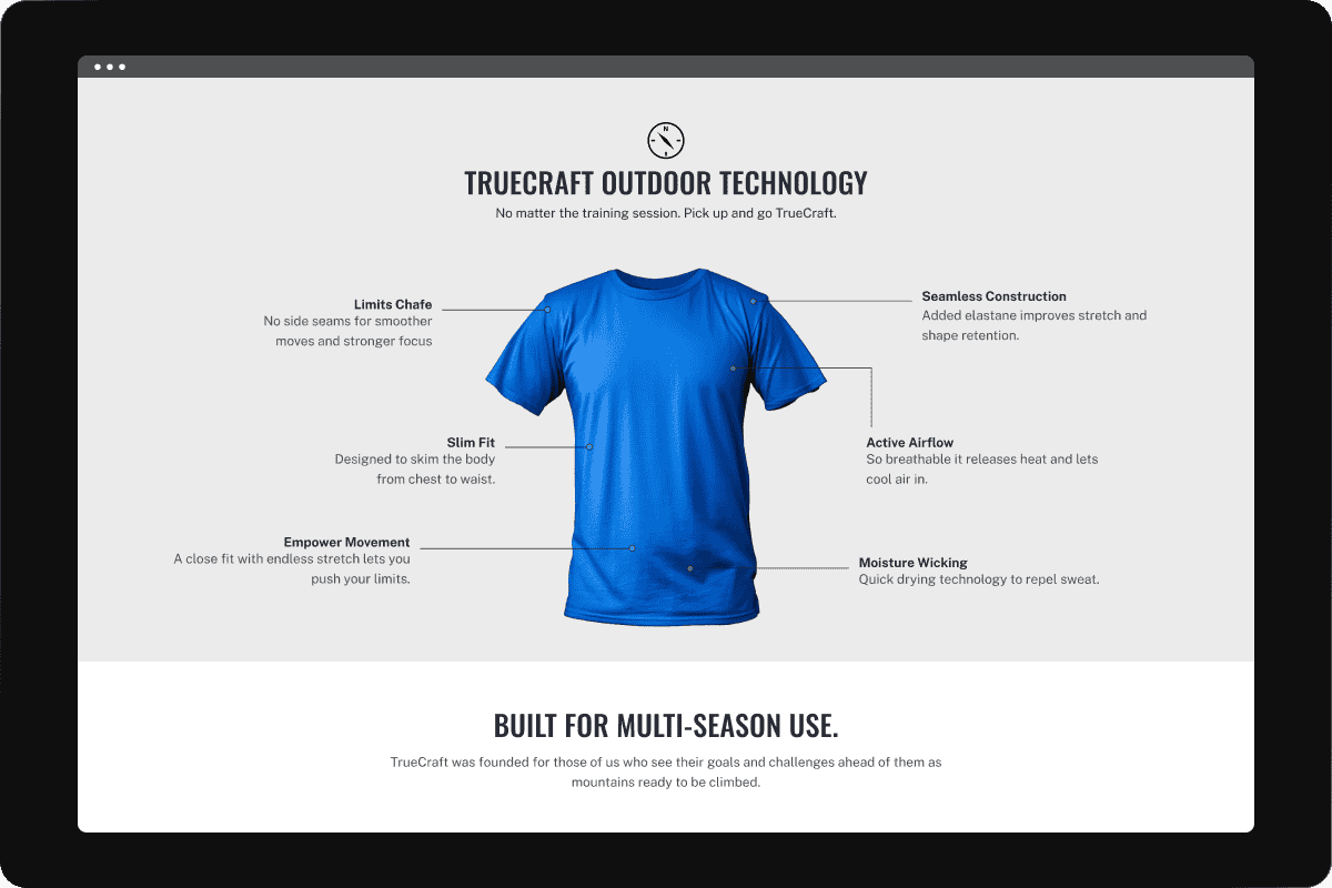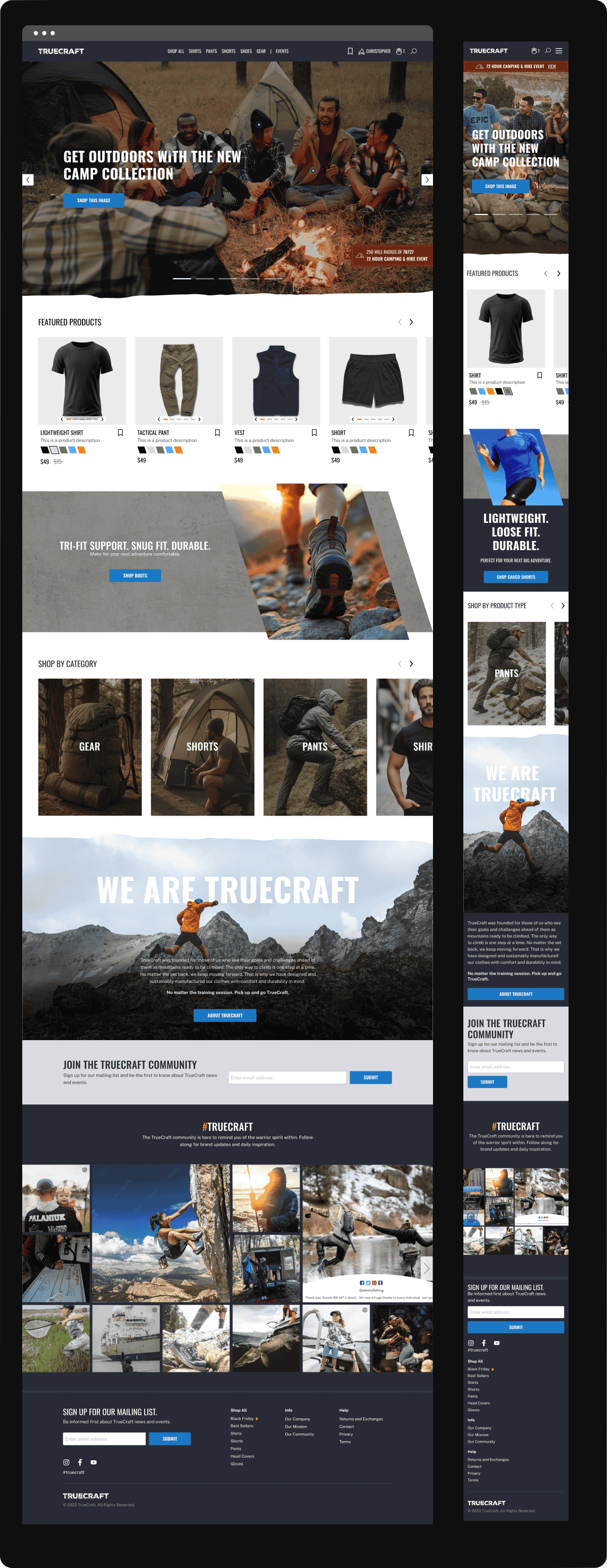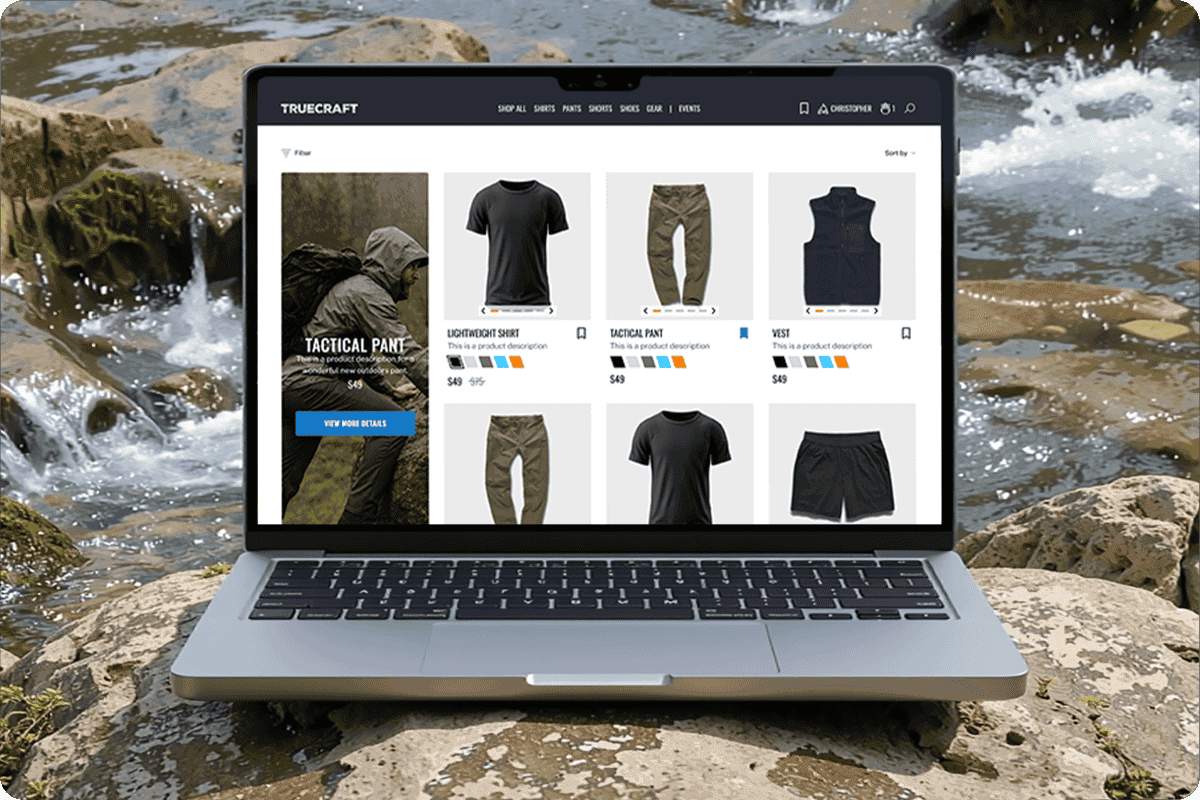 TrueCraft, an outdoor lifestyle and apparel brand, needed a modern digital storefront to reflect its adventurous spirit and expand its e-commerce presence. Their existing online experience lacked scalability, engaging product storytelling, and seamless shopping flows limiting both brand impact and sales growth.