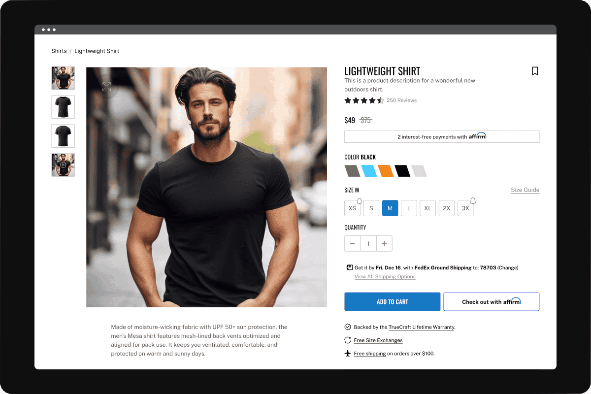 We rebuilt the shopping experience to be clean, straightforward, and decision-ready, so customers get the information they care about without digging. When you’re buying apparel and gear meant to be rugged and tough, shoppers want clarity on performance, construction, and real benefits, like how something holds up over time and how it stays comfortable after repeated wear. We designed product pages to highlight durability, longevity, and comfort as first-class value, reinforcing why TrueCraft is worth it, while keeping sizing, materials, care, weather relevance, and use-case guidance easy to find so customers feel confident committing to the right piece the first time.